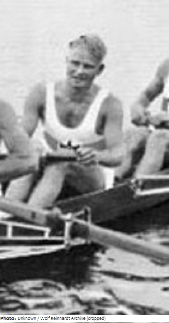 Toni Rom was a rower with the German gold medal-winning coxless fours at the 1936 Berlin Olympics. He started rowing in coxed eights with Würzburger Ruderverein 1875, with whom he won the German Championship in 1933. From 1934-36 he won the national coxless fours title, and in 1934 and 1935 won the European coxless fours title. He was a member of the Rom family who owned a ladies’ wear department store along with Wagner family in Würzburg.