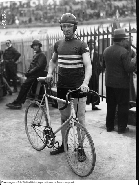 Victor Hopkins was born in Cedar Rapids, Iowa to a single mother who gave him up for adoption when he was a one-year-old. The Hopkins family adopted him, but both parents died before he was nine, and Hopkins grew up living in the Davenport (Iowa) Children’s Orphan Home. There, while delivering papers on his bicycle, he was discovered as a cyclist by one of the top riders in Iowa. After competing in the 1924 Olympics, Hopkins signed a contract as a six-day racer in the United States with John Chapman, who controlled professional cycling in the US in the 1920s. In 1926 he won the US Pro Championship despite missing many of the races after breaking his collarbone. He raced in Europe in 1928 and from 1931-33. After his return to the States he continued to compete in six-days in 1933 and 1934 and then retired.
