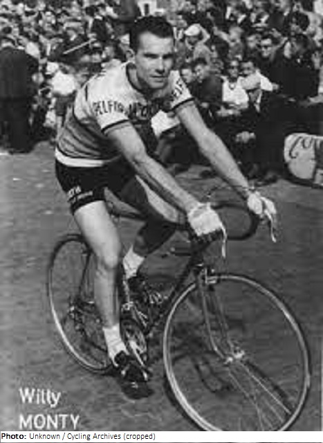 Willy Monty was a professional cyclist from 1963-71, riding for the Pelforth, Peugeot, Faemino, and Watney teams. He won a stage at the 1964 Dauphiné Libéré, and two stages in the 1965 Volta a Catalunya. Monty rode the Tour de France in 1965-67 and 1969, placing 12th in GC in 1967 and 19th in 1966. He placed sixth at the 1967 La Flèche Wallonne and Ronde van Vlaanderen.