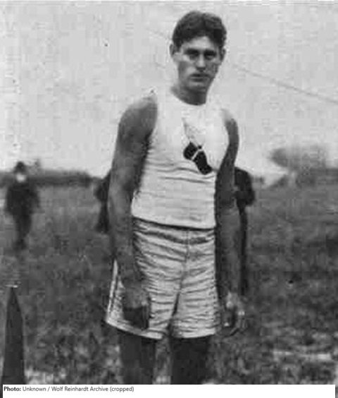 Sam Jones won the IC4A high jump in 1900 and 1901 and the AAU title in 1901,1903, and 1904. His winning jump of 5-11 (1.80) at the 1904 Olympics was well below his best of 6-2 (1.88) which he cleared at the 1901 AAU championships. Jones attended NYU and was the school’s top all-round athlete. He played varsity football for four years, varsity gymnastics for three years, and captained the track team. After graduation, he made his career first as a civil engineer and eventually as a teacher.
