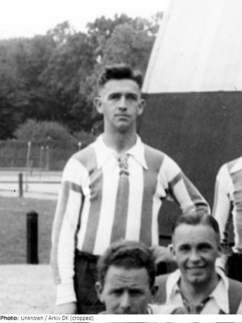 Holger Seebach played football with Boldklubben 1913 in Odense and Odense Boldklub before switching to Akademisk Boldklub (AB) in København in 1945. He played with AB until the end of his career in 1956 and won Danish titles with them in 1945, 1947, 1951, and 1952. Seebach was an attacker who tried to score from all angles, and was known as “always-good-for-a-goal Seebach.” He was capped with the Danish national team 17 times between 1947-53 and scored 9 goals, and competed at the 1948 and 1952 Olympics, winning bronze in 1948 and being losing in the quarter-finals in 1952.