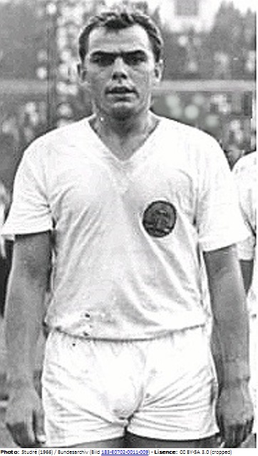 Defense Manfred Geisler played in the Oberliga with SC Rotation Leipzig, later renamed SC Leipzig and 1. FC Lokomotive Leipzig in 318 matches and scored 46 goals. Internationally he appeared for East German’s national team in 15 matches (one goal). With the East German Olympic team Geisler played eight matches in 1963 and 1964. Geisler was trained as a metal worker.