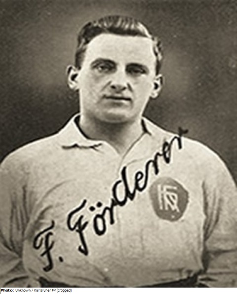 Fritz Förderer was a German football striker. He played for FC Germania Karlsruhe, Karlsruher FV and VfL Halle and played from 1908-13 for Germany, earning 11 caps and scoring 10 goals. He became German football champion with Karlsruher FV in 1910 and was runner-up in 1912. In 1917 Förderer started in the Central German Track & Field Championships at Dresden and finished third in hand grenade throwing (!).