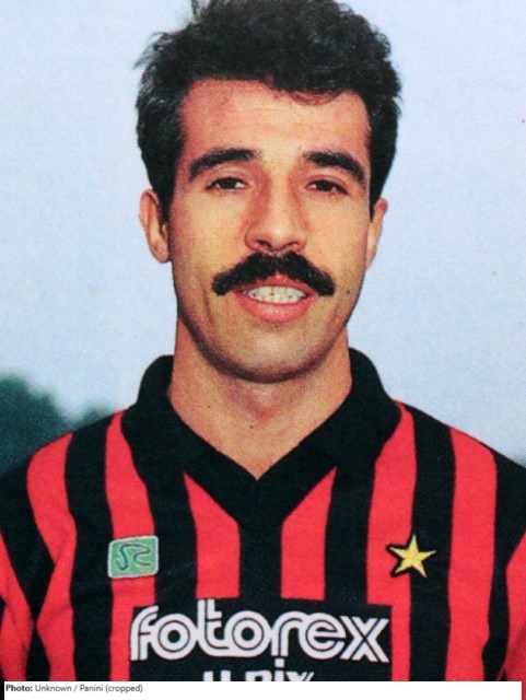 A successful goalscorer, Pietro Paolo Virdis started his career with the Sardinian amateur club Nuorese, before moving into Serie A. He played for Cagliari Caclio (1975-76 and 1981), Juventus (1978-80 and 1982), Udinese Calcio (1983-84), and A. C. Milan (1985-89), and finally ended his career with A. S. Lecce (1990-91). Virdis won two League titles with Juventus, in 1978 and 1982, and the Italian Cup in 1979. He was the League’s top scorer with Milan in 1987, and the following year helped them to win the League and Italian Super Cup, and in 1989 he was in the Milan squad that won the European Cup.
