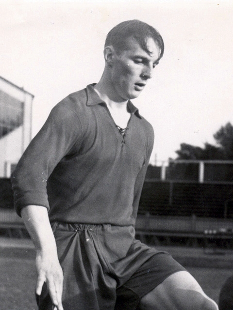 A centre forward, Ingvar Rydell was capped 14 times with the Swedish national team, scoring nine goals, and winning medals at two major international tournaments at the start of the 1950s. He won a bronze medal at the 1950 World Championships, where he participated in one match, the bronze medal match against Spain, which Sweden won. He then competed at the 1952 Olympics, where he played in four matches and scored three goals and again won a bronze medal. At the club level, Rydell started with Billingsfors IK before World War II and then joined Malmö FF in 1948. Malmö FF was the most dominant Swedish football club of that era and Rydell played with them until 1953, playing in 210 matches and scoring 162 goals. With Malmö, Rydell won Swedish titles in 1949-51 and 1953, while finishing as runner-up in 1948 and 1952 and winning Swedish Cups in 1951 and 1953. After leaving Malmö in 1953, Rydell finished his career again with Billingsfors IK. Outside of sports, Rydell worked in his family’s paper mill business.