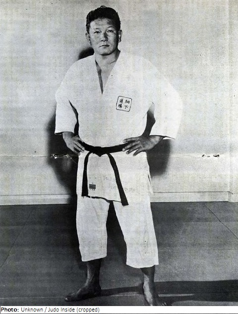 Akio Kaminaga studied at Meiji University and trained in judo at the Kodokan Institute. In 1958 Kaminaga placed second in the World Championship to fellow Japanese, Koji Sone, but he then won three championships at the All-Japan Championships in 1960, 1961, and 1964. Kaminaga was chosen as Japan’s open class judoka for the 1964 Olympics, but sustained a knee ligament injury shortly before the tournament, which hampered his efforts. He lost in the final to Dutchman Anton Geesink, the only class not won by the Japanese, and for this loss, Kaminaga was severely criticized by the Japanese media. Kaminaga later coached the Meiji University judo team in 1968, and was Japanese Olympic judo coach in 1972 and 1992.