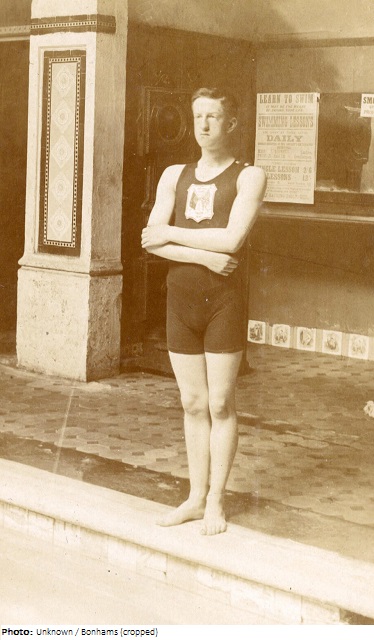 A proficient backstroke swimmer Seward was chosen for the 1908 London Olympics and when he entered the pool for his opening heat of the 100 metres it was just ten days after his 17th birthday, making him the youngest British competitor at the Games. Sadly, he failed to qualify and was eliminated after just one race. His swimming career suffered a severe blow in 1912 when his lungs were badly damaged following a motor car accident. He tried to join the Army but was unsuccessful so he took up flying, obtained his flying licence in 1915, and was accepted into the Royal Flying Corps. He served in Palestine and following an accident in 1917 that saw his plane ditch in the sea, he swam four miles to the shore before walking about 25 miles to safety. A picture of him, entitled “The Seward Exploit,” hung in the Imperial War Museum from 1920-39 and showed a crashed plane in the Red Sea with its pilot (Seward) swimming away from it under a hail of gunfire. He was awarded the Military Cross before retiring form the RAF in 1921 and then enjoyed a successful business career.