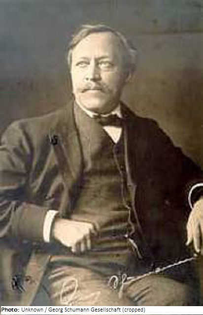 Schumann’s music can be assigned to the outgoing late Romantic and New Romantic periods. He wrote over 100 compositions, mainly choral works, e.g. oratorios, chamber music and orchestral works, including the prize-winning h-minor symphony in 1887. He also wrote most of the arrangements for the so-called “Kaiserliederbuch” (Emperor’s Song Book), an extensive collection of more than 600 folk songs in older and newer textures.