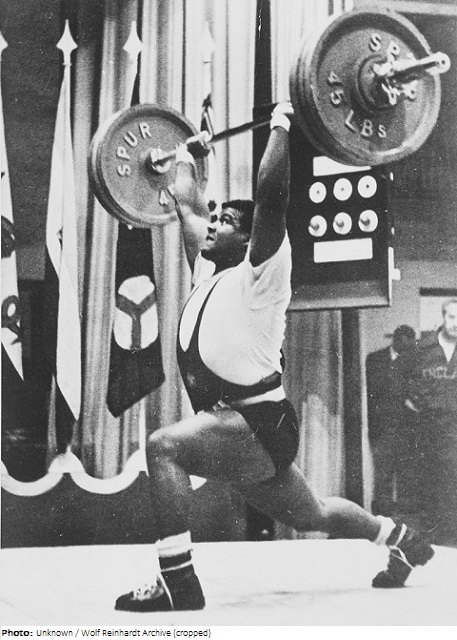 Australian middle-heavyweight weightlifter Manny Santos won his first national title in 1953 when he became the junior champion. Three years later Santos won silver at the Australian championships to earn himself a place on the Olympic team. At the Melbourne Games he lifted a total of 385.0 kg to tie for ninth with Syd Harrington of Great Britain. He then went on to find the form of his life, winning gold at the 1958 British Empire and Commonwealth Games in Cardiff, along with four consecutive national titles from 1958 to 1961. Santos competed at the 1960 Roma Olympics and the 1962 British Empire and Commonwealth Games in Australia, finishing fourth at the latter. In 1963 he won his fifth and final national title before finishing his career with bronze in 1964.