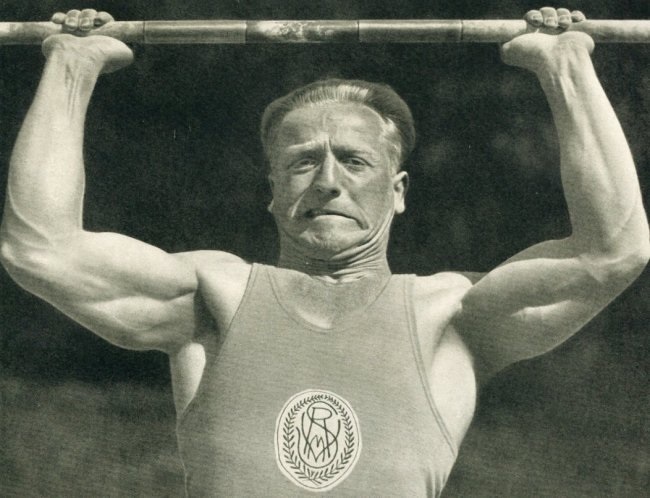 As a teenager Rudolf Ismayr competed in swimming, athletics and gymnastics. He became interested in weightlifting by reading “Winnetou,” a series of books about a fictional Native American chief by German writer Karl May. He was one of the first athletes who was able to earn money with product endorsements. In 1937 he joined the Nazi-Party NSDAP, while from 1940 to 1945 he fought in World War II and was not released from British captivity until 1946. In addition to his two Olympic medals, Ismayr placed second at the 1938 World Championships as a middleweight. He set 11 middleweight world records from 1931-35 – three in the press, two in the snatch, one in the clean & jerk, and five in the total. He also won three European championships and at the Berlin Olympics spoke the Olympic Oath on behalf of the athletes. In Germany, he won seven national titles and took part in the national championships for 22 years (1930-52). In 1938, he competed for Germany in four international meetings against the United States. His last international medal win was the silver medal at the 1938 World Championships.