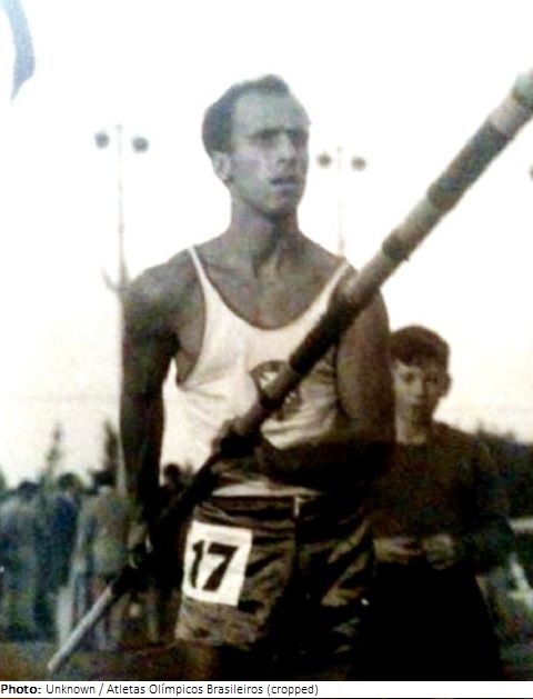 Hélcio da Silva began his athletic career as a footballer with the Atlético and Coritiba clubs, but switched to track and field athletics after discovering that he had greater talents in that realm. The pinnacle of his career came in 1952, when he was South American champion in the pole vault and was selected to represent Brazil in that event at that year’s Helsinki Olympics. There, he placed 25th in the qualifying round and did not advance. He later became a state attorney and a physical education teacher, and was known in his older years as a golfer at the senior level.