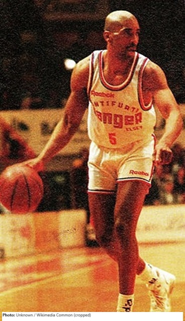 Leon Wood was a shooting guard at Cal State Fullerton, who was the 10th overall pick of the 1984 NBA draft. Drafted by the Philadelphia 76ers, Wood played in the NBA through 1991, playing the 76ers from 1984-86, and then moving around the league quite a bit, playing with the Washington Bullets, New Jersey Nets (twice), San Antonio Spurs, Atlanta Hawks, and ending his career with the Sacramento Kings. During his NBC career Wood averaged 6.6 points/game. He then played overseas, having a brief stint with MTV 1847 Giessen in Germany. During his NBC years, Wood had also played with CAI Zaragoza in Spain during the 1988-89 season. In addition to his 1984 Olympic gold medal, he won gold at the 1983 Pan American Games.