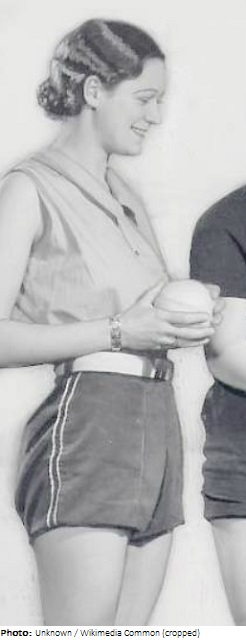 In 1932, Nan Gindele set a world record in the javelin throw with 153-4 [46.73], the first ever recognized by the IAAF, and it lasted as a record for 10 years. She also won the AAU title with the spear in 1933. She was also quite good in the now defunct basketball throw event, held indoors. She won the AAU title indoors in that event in 1933, 1934, and 1936, setting a US record of 101-6¾ [30.95] in 1933 that stood until 1950. Gindele attended Northwestern, represented the Illinois Women’s Athletic Club, and later became a school teacher.