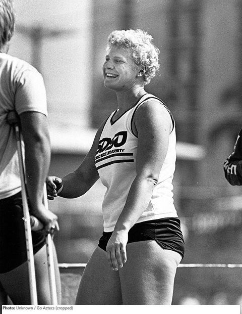 Personal Bests: SP – 66-2½ (20.18) (1988); DT – 203-2 (61.92) (1987); JT – 150-2 (45.77) (1984).