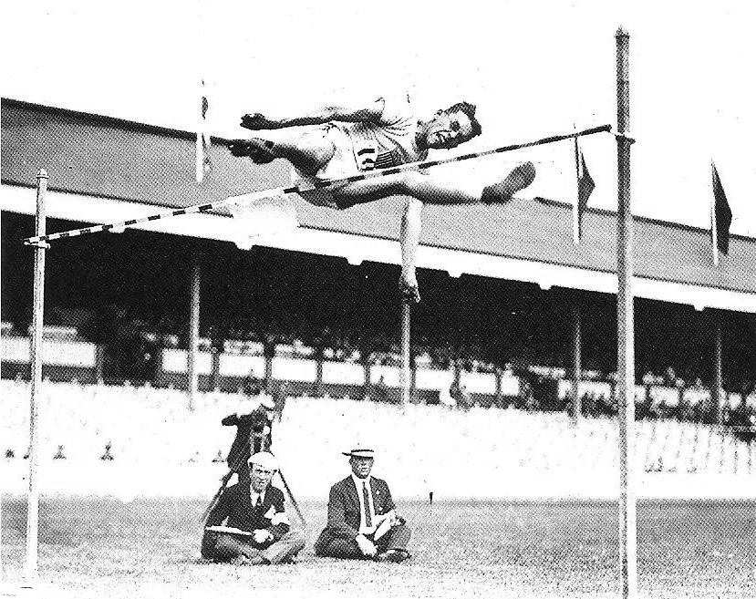 After attending Hotchkiss, Dick Landon enrolled at Yale and won the IC4A high jump in 1919 and 1920. At the 1920 AAU championships, which doubled as the Final Trials, Landon placed second to John Murphy of Notre Dame, but at Antwerp, Landon took the title, with Murphy fifth. Landon achieved the best mark of his career in 1921 when he cleared 6-6 (1.98) to win the Harvard/Yale vs. Oxford/Cambridge dual meet. He was also an excellent indoor jumper and at the 1923 Millrose Games he tied with Leroy Brown of Dartmouth as both set a new world indoor record of 6-5¼ (1.96). Landon’s only AAU title came at the 1921 indoor meet.