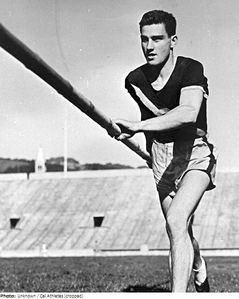Guinn Smith was the last man to win the Olympic pole vault title using a bamboo pole. He won the 1940 IC4A and tied for the NCAA title in 1941. Smith started out as a high jumper in college but switched to the pole vault when he realized how strong the high jump squad was at U Cal Berkeley. After graduating from Berkeley in 1942 he was out of the sport for three years, during which time he won the Distinguished Flying Cross as a captain in the Army Air Corps.