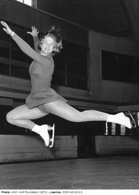 The daughter of speed skater Lou Dijkstra, Sjoukje Dijkstra started skating at age 6, and was quickly discovered as a figure skating talent. She finished fourth at the Dutch championships of 1953, just weeks short of her 11th birthday, and qualified for her first European Championships the following year. Coached by Arnold Gerschwiler (uncle of Olympian Hans Gerschwiler) she started her climb up the ranks, together with the slightly older Joan Haanappel. She first medalled internationally in 1959 (European silver and World bronze), and won the European title the next year. At her second Olympics, she was a medal favorite, but no match for Carol Heiss who took the title. From then on, Dijkstra’s dominated women’s figure skating. She won all European Championships between 1960 and 1964, and all World Championships between 1962 and 1964. She crowned her career by winning the gold medal at Innsbruck, cheered on by the Dutch royal family. She joined Holiday on Ice later that year, and toured with them for eight years.