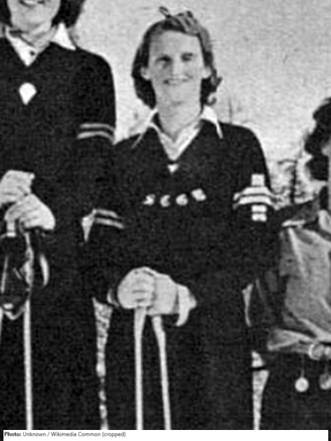 When Bunty Greenland won the British Ladies title in 1947, she was believed to be the first mother to win the title, as she had a 2-year-old daughter at the time. It was Greenland’s only British title, as she beat Isobel Roe into second place. Roe had won the title in the last two years before the outbreak of World War II, in 1938 and 1939, and won it again in 1948 and 1949. Greenland was a member of the Whit Hare Ski Club, founded by her husband Donald and, in 1941, Bunty was elected a member of the famous Kandahar Club. Donald worked for Thomas Cook, taking British tourists skiing in Switzerland while his wife was a leading coach there. On 23 May 1955 Bunty Greenland changed her name from Margaret Mary Greenland to Bunty Stockwell. She died at the age of 85 but, for the last 12 years of her life, lived with the handicap of losing one of her legs to cancer. She maintained her wicked sense of humour, however, throughout adversity.