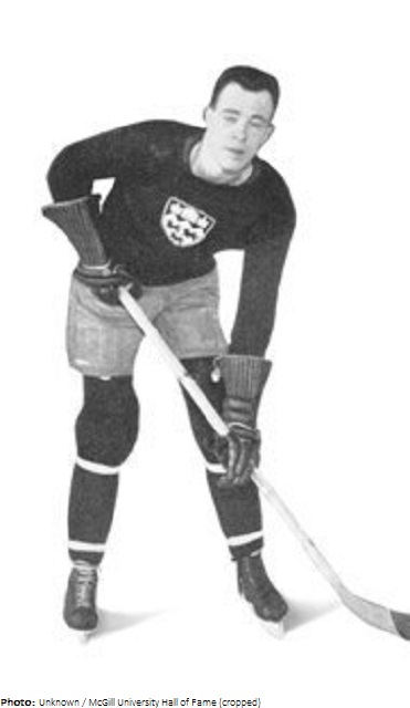 Forward Hugh Farquharson entered McGill University at the age of only 15 and played on their ice hockey team, the McGill Redmen, for seven years (1927-1934) while obtaining a Bachelors of Arts (1931) and a Bachelors of Common Law (1934). He spent one year as co-captain (1931-1932) and won four intercollegiate championships during his tenure. After his graduation he was offered a chance to play professionally in the National Hockey League with the Montreal Canadiens, but declined this offer so that he could join the amateur Montreal Royals. He played with them for one season and, after the team complained about the Port Arthur Bearcats being selected as the 1936 Canadian delegation to the Winter Olympics, he was sent with Ralph Saint Germain and Dave Neville to join the amateur Ontario team. Unlike St. Germain and Neville, however, Farquharson was on the Montreal Victorias roster for the 1935-1936 season. At the tournament he played in eight games and was the team’s scoring leader with 11 goals, but the team had to settle for their first silver medal. After the Olympics, he played one season with the Southampton Vikings of the English National League, and then spent five seasons (1937-1942) as coach for the McGill Redmen. In his final season with the Redmen, he was also the head coach for the Montreal Navy team. He was made a member of the McGill Sports Hall of Fame in 2002.