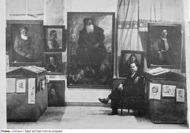 Dimitrios Kokotsis was a Crete-born Greek painter, who later lived and worked in Athina. Very little is known about his studies and works. His only notable known work was his participation in creating the Greek classroom at the University of Pittsburgh’s Cathedral of Learning, where 29 classrooms were designed by the ethnic groups that helped build the city of Pittsburgh. In the Greek classroom Kokotsis used the traditional encaustic painting method, employing earth colors and beeswax applied freehand which was then overlaid with 24-carat gold leaf rubbed on by polishing bones which required two men more than seven months to complete the artwork.