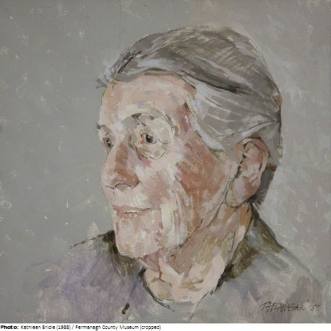 Kathleen Bridle was the daughter of an Irish coastguard officer and studied at the Metropolitan School of Art in Dublin and later – on a scholarship - at the Royal College of Art in London, where she met the famous sculptor Henry Moore. She started her professional career at a stained glass studio in Dublin, before she moved to Enniskillen, where taught art mostly at the local Collegiate School until her retirement. She made many trips throughout Europe and even travelled to New Zealand when she was older. Kathleen Bridle painted portraits, still lifes, scenes from Ireland and abroad, mainly in water colors but also in oil. Between 1920 and 1950 she had various exhibitions in many parts of Ireland. In 1948 she became a full member of the Royal Ulster Academy. She died in a retirement home near Enniskillen and was honored posthumously by a comprehensive retrospective of her works in 1998.