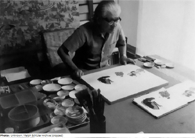 After graduating from the Tokyo School of Fine Arts in 1931, Bunji Miura and several of his classmates (including Eizo Kato, Kaii Higashiyama, Shingo Yamada and others) presented their works at an exhibition of the Shino Co. In 1932, he was the winner of the Inten Exhibition. Towards the end of World War II, he was evacuated to his hometown Suwon-cho (now Agano) in the Niigata prefecture. From 1946 until his retirement in 1972, he worked as a teacher at various schools in the prefecture. His hanging scroll Sukī shows two children skiing.
